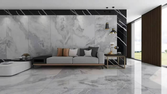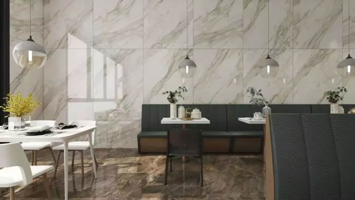 巖板的規(guī)格一般都在1200×2400(mm)以上,大面積的巖板鋪設(shè)風(fēng)格大方,給人一種延伸、開闊的感覺,連紋鋪貼實現(xiàn)“無限拼紋”,最終打造出大氣磅礴,紋理流暢的效果,空間整體感極強。